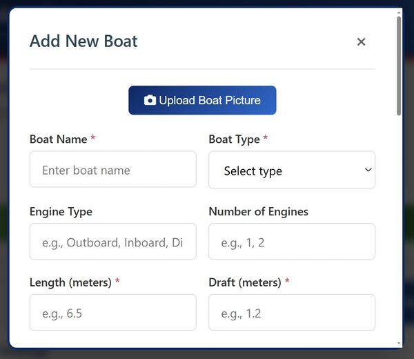 Boat - Select your existing boat and it pre populates from your stored boats