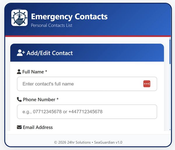 This data (your profile, boat details, trip data etc) will be pushed through to your regional coast guard service (anywhere in the world), to our Control Centre and your Emergency Contact.